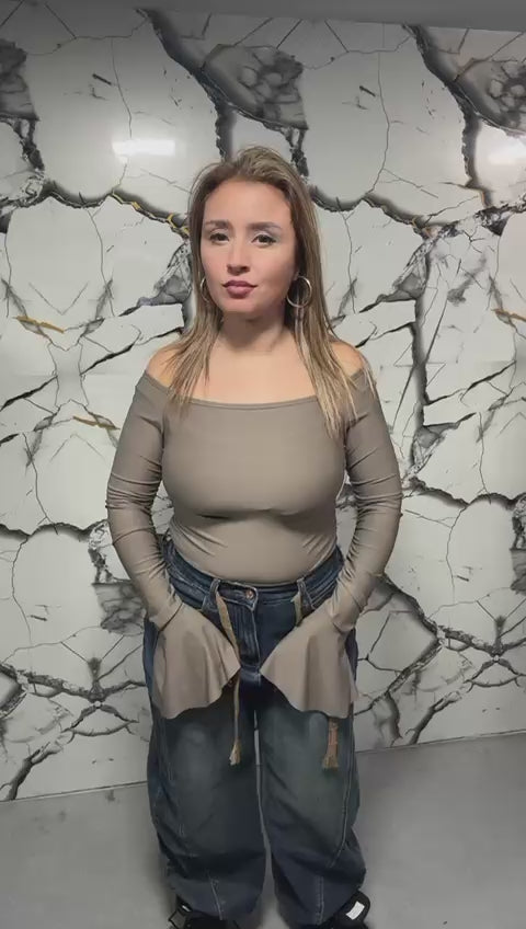 Body elegante con scollo a barca e dettagli arricciati, perfetto per chi ricerca versatilità e stile. La vestibilità taglia unica si adatta comodamente alle taglie S-M, garantendo una silhouette raffinata e confortevole. Un capo essenziale da abbinare facilmente con qualsiasi outfit, ideale per occasioni casual e più formali.